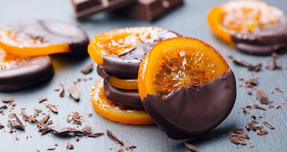 - Oranges – There may be no better combination than chocolate and orange. To get oranges at their best, buy them in the first few months of the year when they’re highest in quality and pair them with milk or dark chocolate, such as Callebaut’s No. 823 or 811.